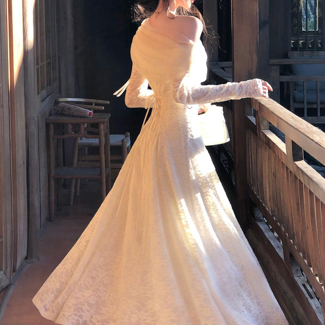 Romantic Ivory Lace Off-Shoulder Maxi Dress