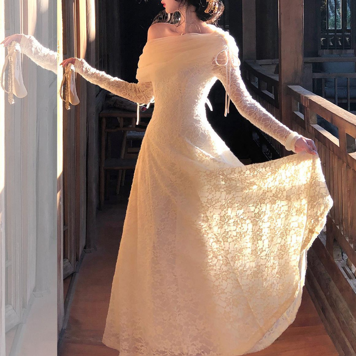 Elegant Ivory Lace Long-Sleeve Maxi Dress